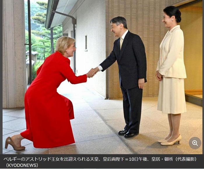 天皇、皇后両陛下は10日、皇居・御所でベルギーのフィリップ国王の妹アストリッド王女と、夫のロレンツ王子と懇談された。大阪・関西万博の視察などのため来日した。両陛下は御所の車寄せで出迎え、王女らと笑顔で握手を交わした。 6日は、秋篠宮ご夫妻が東京・元赤坂の赤坂御用地にある宮邸で面会していた。記事・画像出典 共同通信