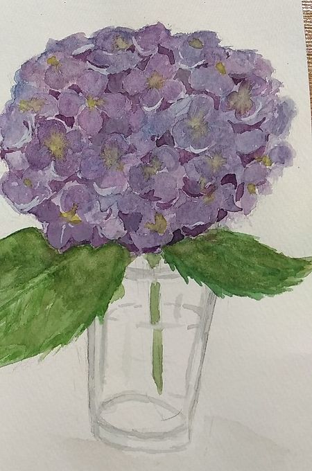 mayuさんの紫陽花の水彩画、一枚目から上手いと思います。わたしだったら、最初から、このように描けません。