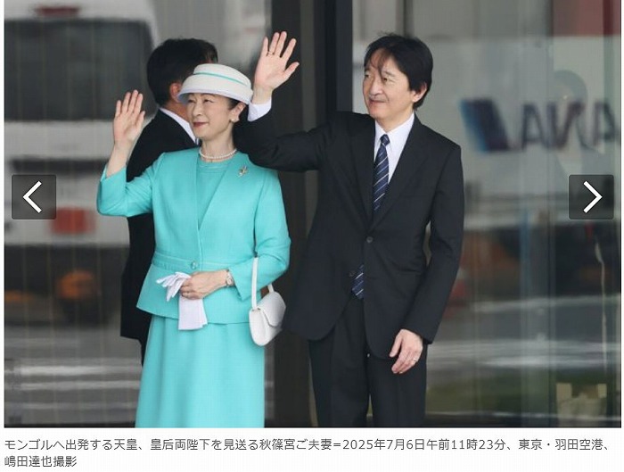 皇后さまは公式行事を中心に、体調を踏まえて出席する。滞在中は秋篠宮さまが国事行為を臨時代行する。記事出典 時事通信 https://www.jiji.com/jc/article?k=2025070600098&g=ryl