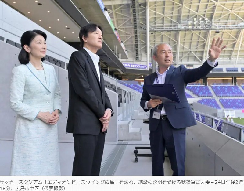 毎日うだるような暑さですね。秋篠宮ご夫妻は高校総体(インターハイ)の開会式に出席され、開会式の後は去年開業した広島サッカースタジアムを視察されました。開会式は約2時間で館内冷房は効いているでしょうが、何しろ移動だけでも熱風で暑い。