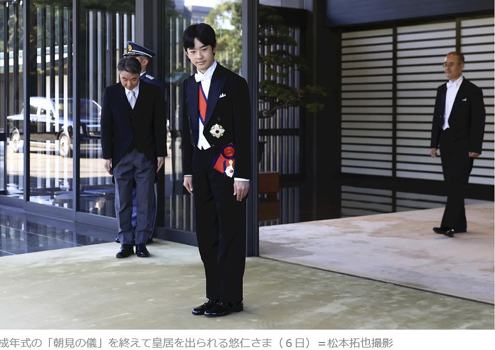 悠仁さま「成年皇族としての責務」「さらに勉学に勤しむ」朝見の儀で両陛下に決意述べられ