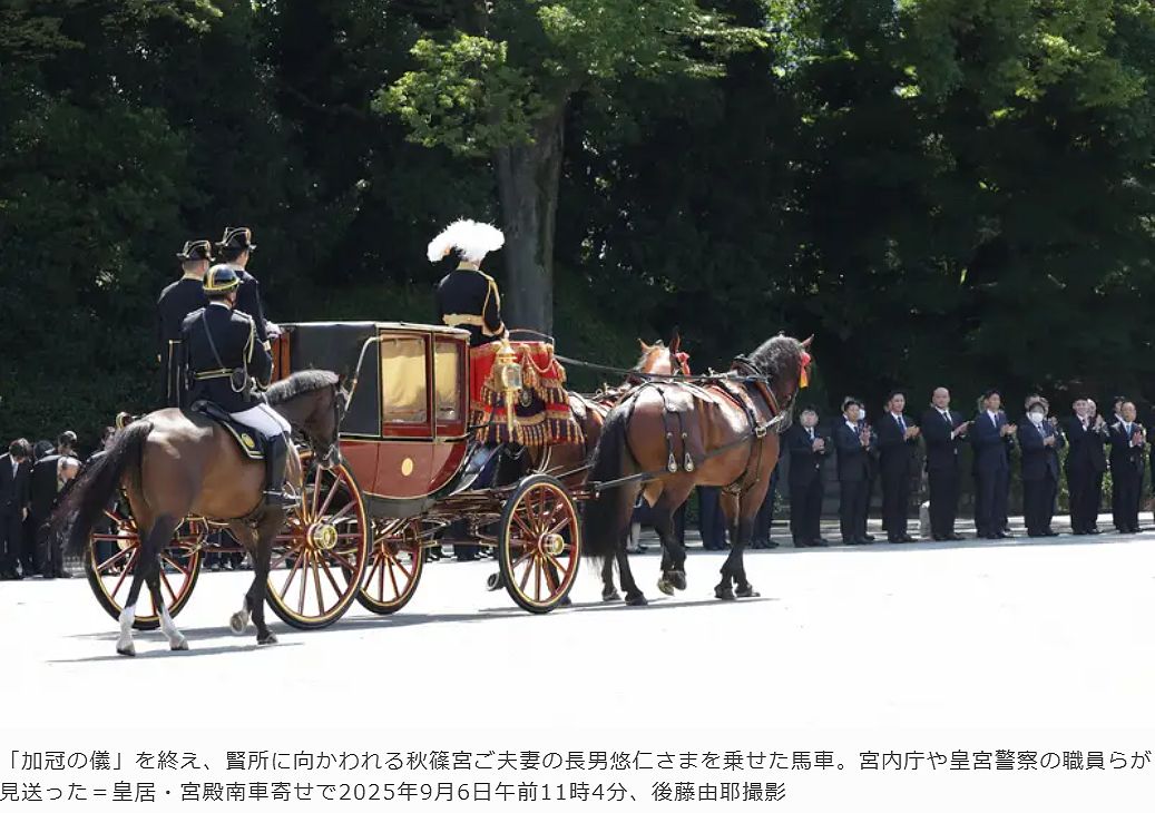悠仁さま、儀装馬車で宮中三殿へ「賢所皇霊殿神殿に謁するの儀」