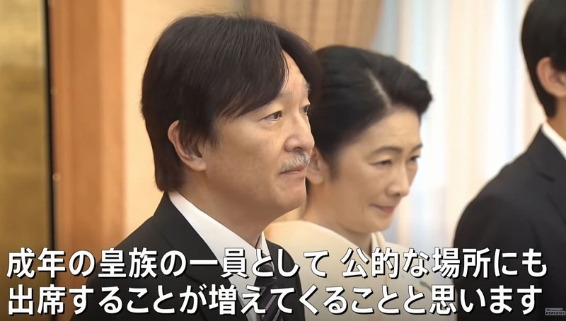 秋篠宮さまは、石破茂首相の祝辞を受けたお言葉で、「成年の皇族の一員として、公的な場所にも出席することが増えてくることと思います。一つ一つを大切に考え、そして務めを果たしていってくれることを願っております。皆さまにも引き続き、見守っていっていただければありがたく存じます」と述べられた。