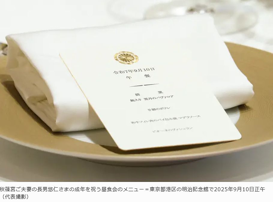 追加 宮内庁のInstagramより【悠仁親王成年式関係儀式行事】令和7年9月10日(水)、明治記念館(港区)において、悠仁親王成年式祝宴(午餐)が行われました。
