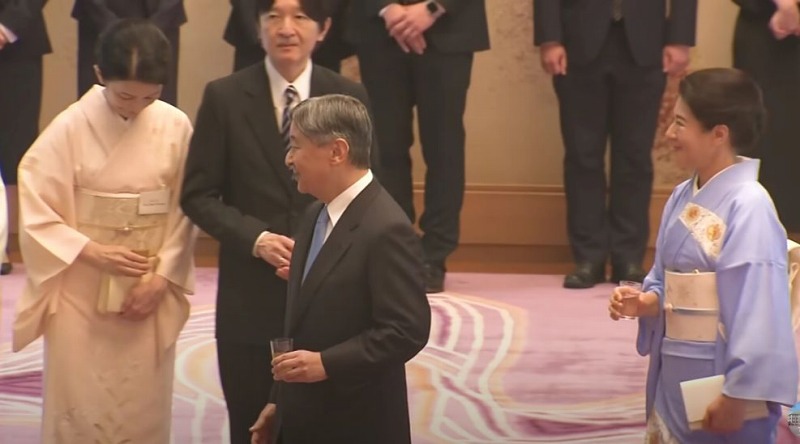上の動画で徳仁天皇の挨拶と乾杯が終わった4分過ぎに徳仁天皇と雅子さまが秋篠宮ご夫妻の前を通る時、徳仁天皇は皇族方にはロクに目を合わせず、雅子さまもフンとした顔で通り過ぎますが、秋篠宮殿下も天皇皇后夫妻の顔を見ません。下のこの表情です。紀子さまは顔に出さずでした。