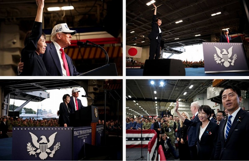 トランプ米大統領は28日午後、米海軍横須賀基地(神奈川県横須賀市)に停泊中の米原子力空母「ジョージ・ワシントン」で演説し、在日米軍兵士に対して「日米同盟は世界で最もすばらしい関係だ。太平洋の中で平和と安定の土台となっている」と語った。トランプ氏は「勝者だ。本当に近しい友達になった」と高市首相を紹介し、首相も演説で「日本の防衛力を抜本的に強化し、この地域の平和と安定によりいっそう積極的に貢献していく」と強調した。記事出典 読売新聞https://www.yomiuri.co.jp/politics/20251028-OYT1T50140/