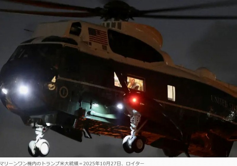 10月27日トランプアメリカ大統領が6年振りに来日しました。今回の来日は国賓ではなくトランプ「公式実務訪問賓客」で来日のため、歓迎式典、宮中晩餐会などは無しでしたが、大統領専用の航空機「エアフォースワン」はともかく、専用ヘリコプター「マリーンワン」、専用車両「ビースト」を持ち込んでの来日で、27日の予定は皇居で徳仁天皇と会見する為に皇居訪問時も「マリーンワン」と「ビースト」で移動でした。