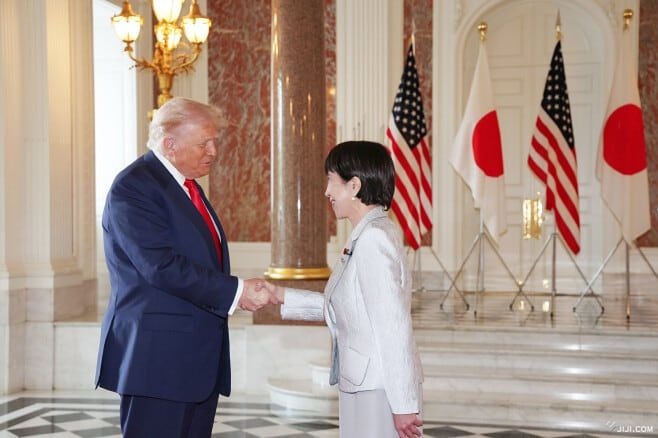 迎賓館でトランプ大統領をお迎えする高市総理はやや緊張しているようでした。握手をして挨拶のあと、儀仗隊の栄誉礼を受けその後、会談に臨みましたが、その前にトランプ大統領と高市総理は一緒に米大リーグ・ワールドシリーズのロサンゼルス・ドジャースの試合を見たそうです。これで少し打ち解けたでしょうか。