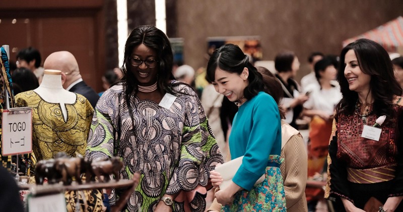 佳子さま、中東やアフリカへの支援バザーご視察 聴覚障害ある女性の刺繍作品などご覧に