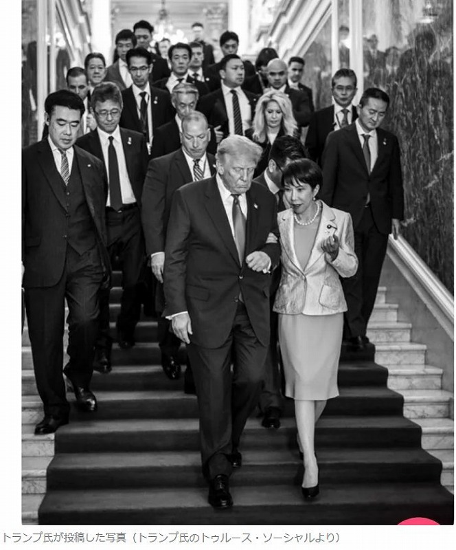 トランプ大統領が投稿した、高市さんをエスコートしているモノクロの写真、素敵だなと思いました。