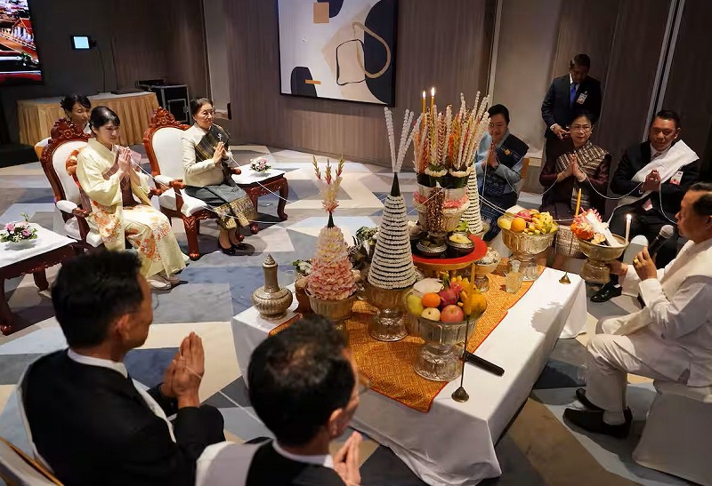 これに先立ち、愛子さまは同国の伝統儀式「バーシー・スークワン」に参加された。参加者の健康と繁栄を祈る儀式で、訪問の成功を願って手首に白い糸を巻き、そのまま晩餐会に臨まれた。記事出典 読売新聞 https://www.yomiuri.co.jp/koushitsu/20251119-OYT1T50059/