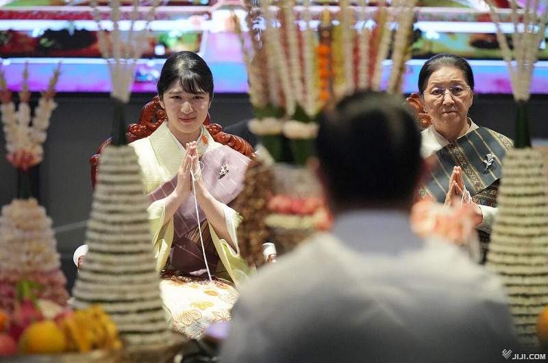 ラオスを公式訪問中の天皇、皇后両陛下の長女、敬宮愛子さまは18日、国家副主席主催晩餐会に先立ち、バーシーセレモニーに臨まれた。