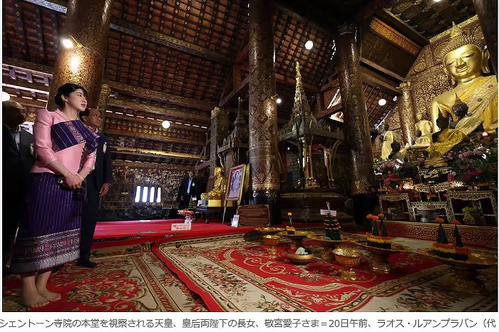 【ルアンプラバン時事】ラオスを訪問中の天皇、皇后両陛下の長女愛子さまは20日、古都ルアンプラバンを日帰りで訪れ、ブンルアム県党書記との昼食会に臨まれた。