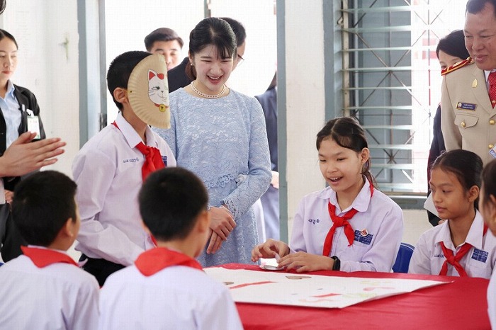 【愛子さま 水色のワンピースで】生徒に「どのようなアニメがお好きですか」日本語の授業を視察/COPEビジターセンター/ラオス日本武道センター