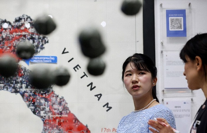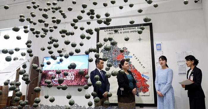 ビエンチャン時事】ラオスを訪問中の天皇、皇后両陛下の長女愛子さまは19日、首都ビエンチャンにある、不発弾問題の啓発施設「COPEビジターセンター」を視察された。同国ではベトナム戦争中の1964~73年、南ベトナム解放民族戦線(ベトコン)への補給路の遮断などのため、米軍が200万トン以上の爆弾を投下。現在も不発弾の除去作業が続けられている。