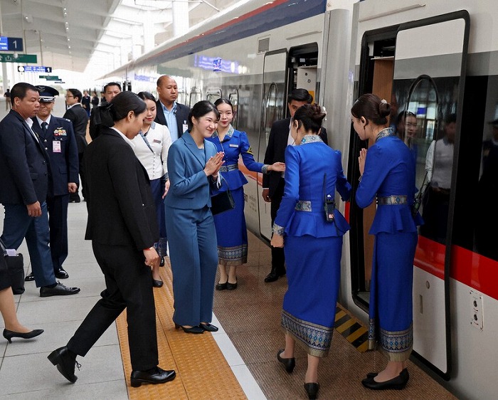 3日目の朝、青いパンツスーツの愛子さまは、首都ビエンチャンの駅から古都ルアンパバーンに向かう高速列車に乗り込まれた。