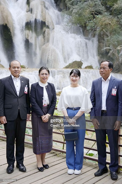 午餐会の後はまたパンツスーツにお着替えをして、ラオ・フレンズ小児病院を訪問。その後に上着を脱いだのでしょう。クワンシーの滝を見学されました。その訪問先によって「視察、訪問、見学」と変わるのです。夜の9時半ですが、まだ動画もアップされません。時事通信の画像が一枚あるだけなのでこちらもGetty Imagesからお借りしました。 毎日丁寧にテレビニュース、ワイドショーなどで愛子さまのラオス訪問が放送されるので、天皇皇后夫妻は大喜びでしょうね。