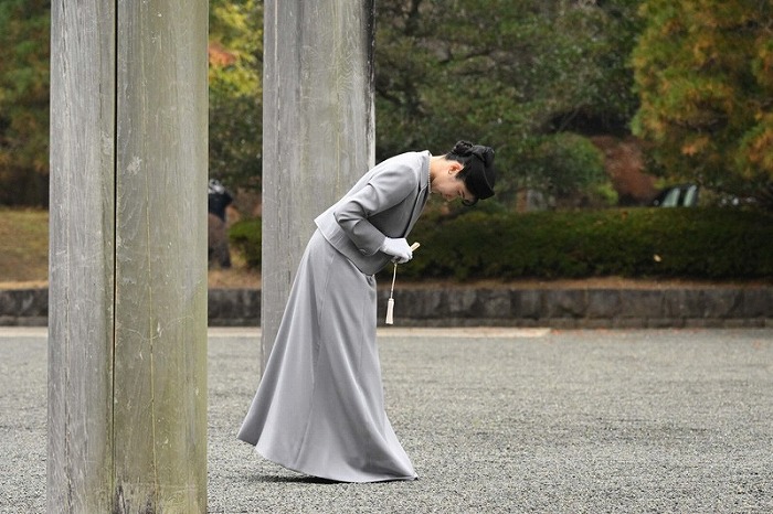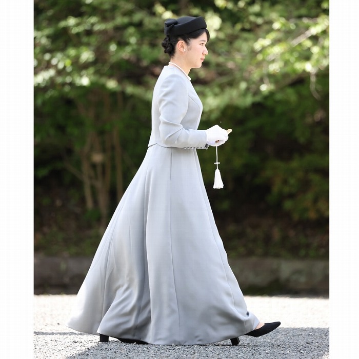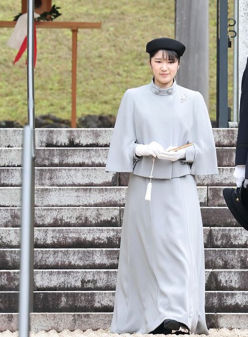 下の画像は2024年4月25日、天皇皇后両陛下の長女・愛子さまが、学習院大学の卒業や日本赤十字社に就職されたことを報告するため、初めて一人で参拝の時と、ラオス訪問前の画像。美智子限定かと思ったケープは愛子さまが引き継がれたようです。昨日は雅子さま愛用のテーラードジャケットを羽織っていました。