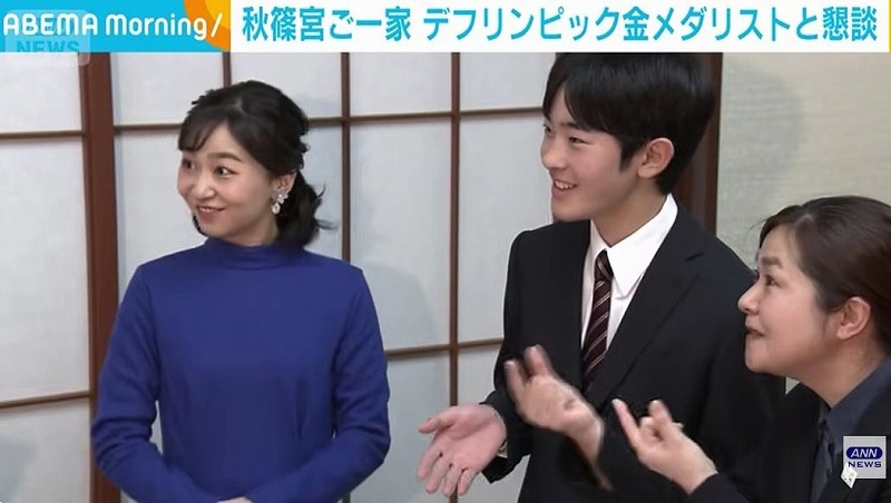 秋篠宮ご一家は東京デフリンピックの金メダリストと懇談されました。9日午後5時頃、秋篠宮ご夫妻と次女・佳子さま、長男・悠仁さまはお住まいの宮邸でデフリンピックの金メダリスト12人と面会されました。