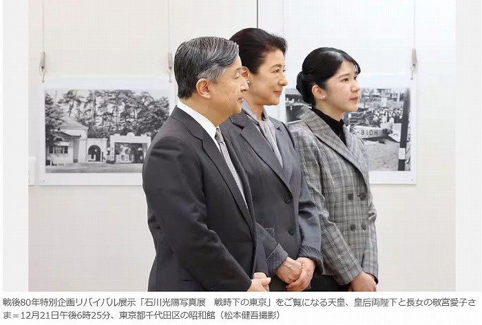 天皇一家が21日に戦後80年の特別企画として、空襲の被災状況などを特命で撮影した警視庁のカメラマン、石川光陽(こうよう)の写真展を鑑賞されました。