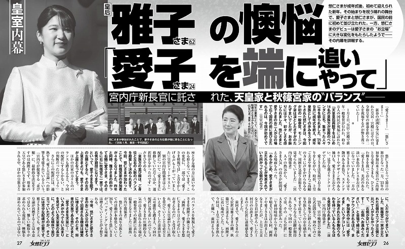 美智子さま自身と言われた女性誌の女性自身も今では雅子さま&愛子さま自身に変わってしまいました。