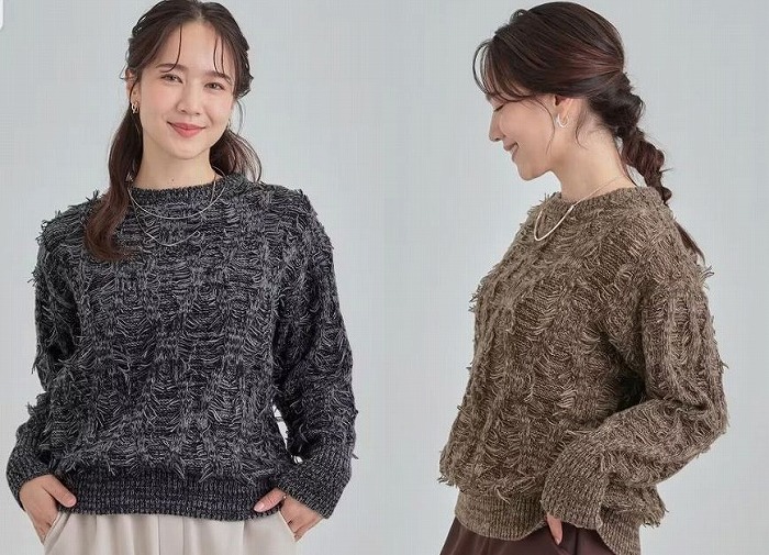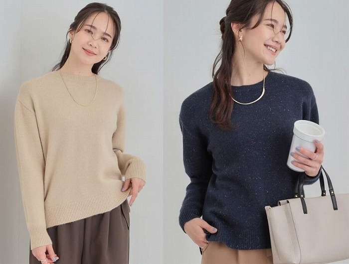 ラメが少し入っているニットで、私はベージュ色、娘に紺色とオフホワイト。
