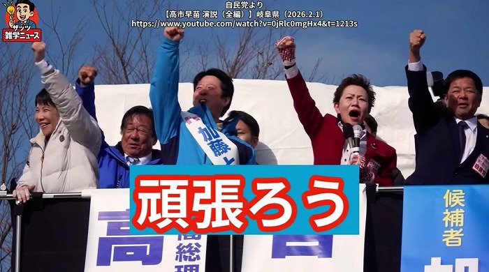 ふと見た動画が大笑いで、2回、3回と見てしまいました。若井敦子議員の選挙応援で、話し方は浪花節か宝塚の男役のようなとっても迫力のある方で、思わず高市総理も周りの方々も笑っていました。強い女性が増えて嬉しいですね(笑)