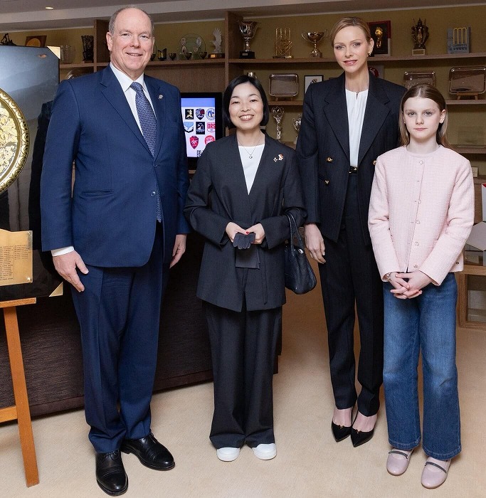 2026年3月20日、アルベール大公とシャルレーヌ公妃は、ガブリエラ公女を伴い、スタッド・ルイ2世で開催された第14回サント・デヴォート・トーナメントの開会式に出席しました。大公夫妻の公式ゲストとして、日本ラグビー連盟会長の三笠宮明子妃殿下も、大公夫妻と共に大会を観戦しましたhttps://www.newmyroyals.com/2026/03/princess-charlene-and-prince-albert.html