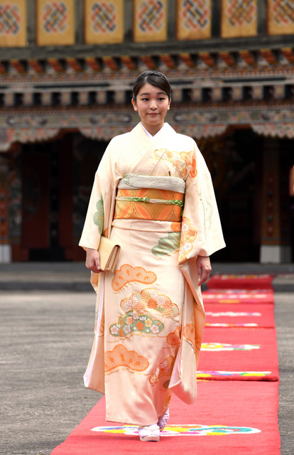 色の振り袖を身にまとい、ブータン政府主催の歓迎行事に参加されました。そ
