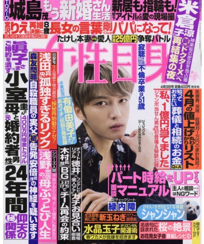 目に入った本屋の週刊誌コーナーの女性自身今週号(4月3日号)