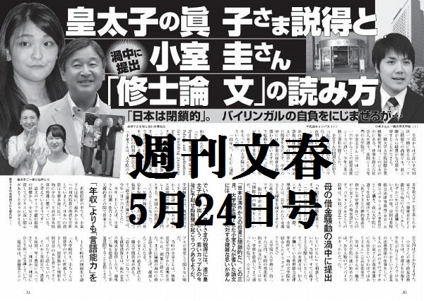 今週の週刊文春5月24日号。