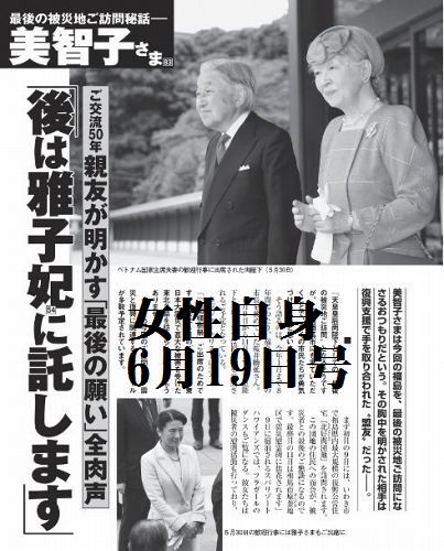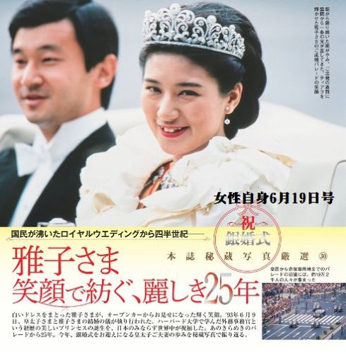 今週の女性自身は雅子さまご成婚25周年記念大特集でした。