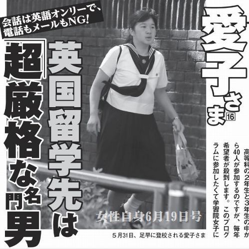 愛子さま 英国留学先は男子校!超厳格で電話もメールも禁止