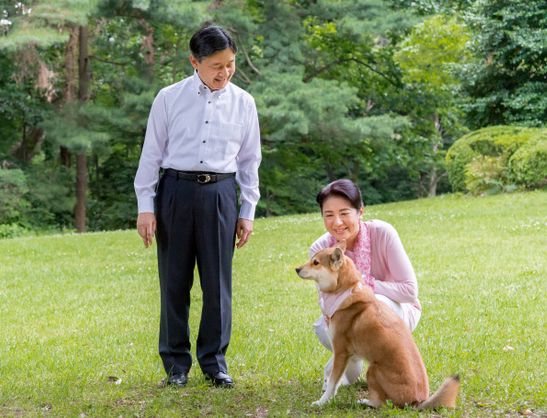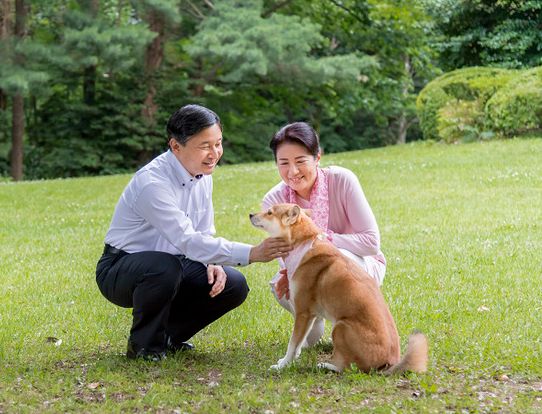 結婚25年を前に、愛犬の「由莉(ゆり)」を連れて東宮御所の庭で談笑する皇太子ご夫妻