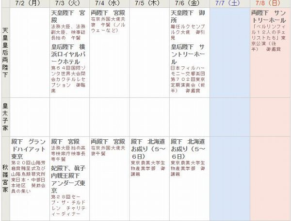 今週の予定7daysを見ても、皇太子の予定欄は白紙です。
