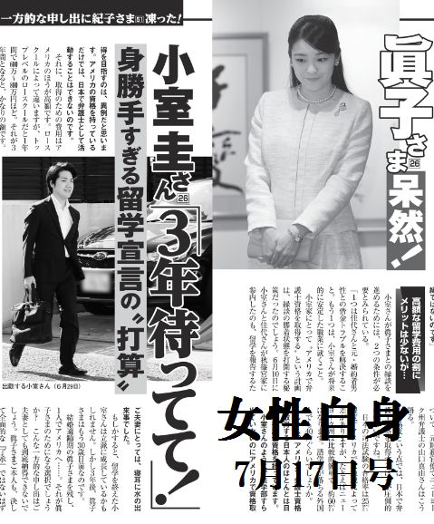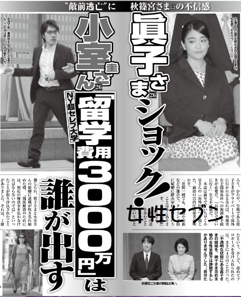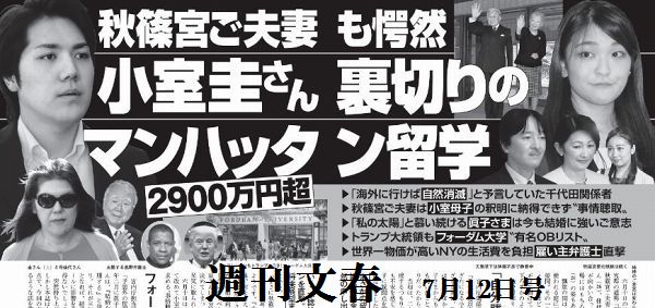 各週刊誌は小室Kの留学費用に疑問符のようです。