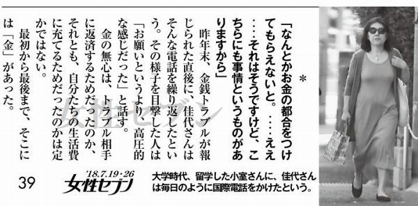 女性セブンの記事で、ネットにアップされていない部分を掻い摘んで紹介します。