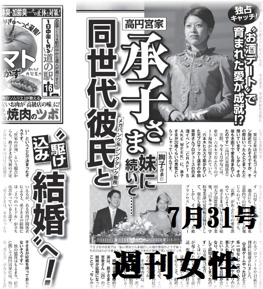 絢子さまに続いて長女の承子さまも、週刊女性のタイトルで