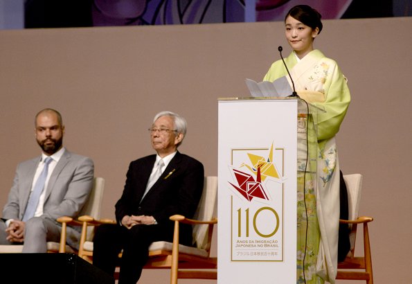 あいさつされる秋篠宮家の長女眞子さま=21日、サンパウロ(共同)