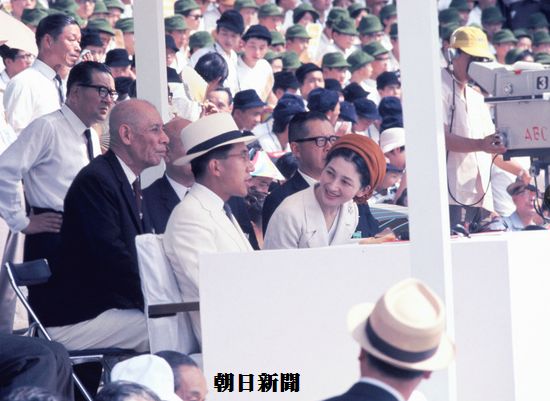 天皇陛下と美智子さま=1968年8月、阪神甲子園球場