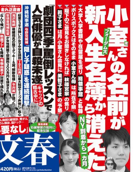 明日発売の「週刊文春」9月13日号が興味深いです。
