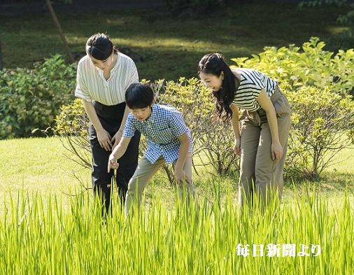 住まいのある赤坂御用地(港区)の水田で稲を栽培し、8月にご家族で稲刈りをした。