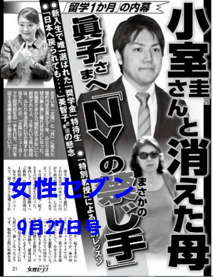 「もし、眞子さまがNY州の弁護士となった小室Kと結婚するならば、新居はNYに構え、当然そこには圭与さんも同居することになるだろう。」
