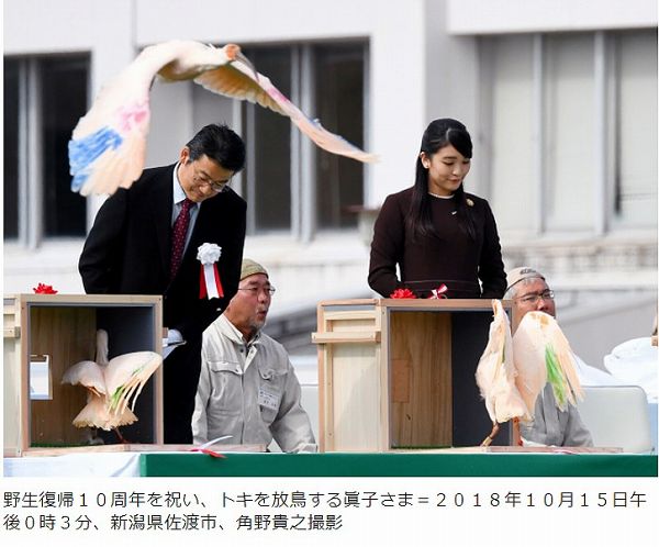 秋篠宮ご夫妻のあとを引き継いで眞子さまトキの放鳥へ