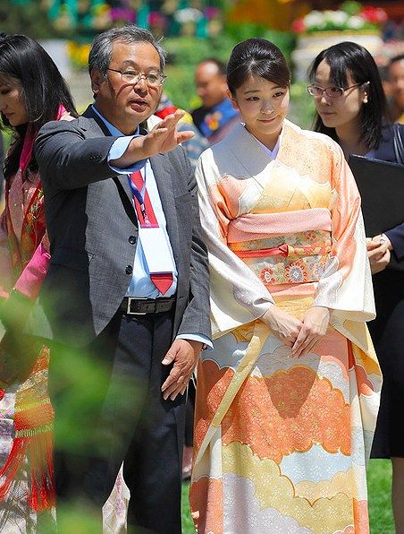 トキ色の着物とドレスの眞子さま