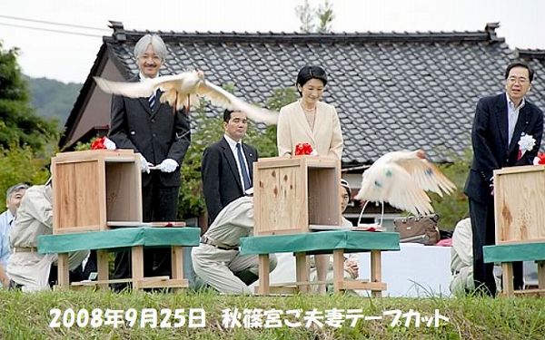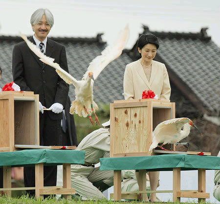 秋篠宮ご夫妻トキの初放鳥。2008年9月25日