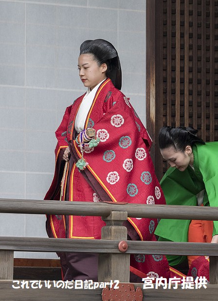 宮中三殿拝礼の古式ゆかしい衣装の絢子さま、素直に