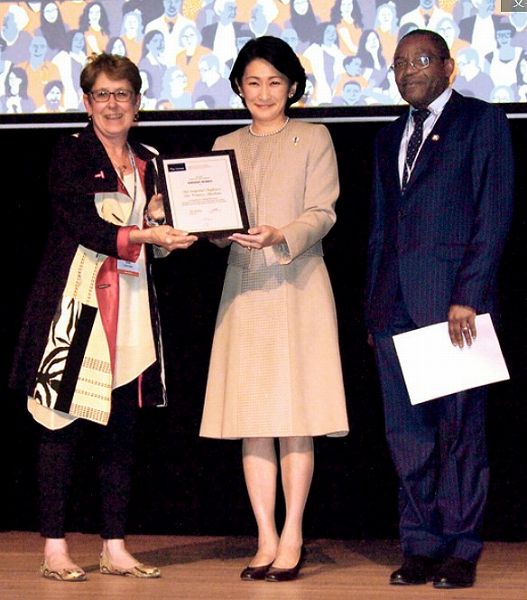 紀子さまは、同連合のジェーン・カーター前会長から称号の証書を手渡された後、