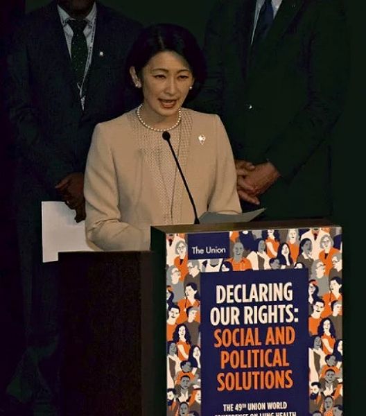 英語でスピーチし、「結核がなくなり、世界の人々がより健康になるため、