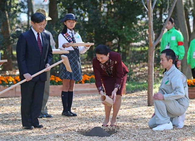 皇太子ご夫妻、全国育樹祭に出席 イチョウを手入れ